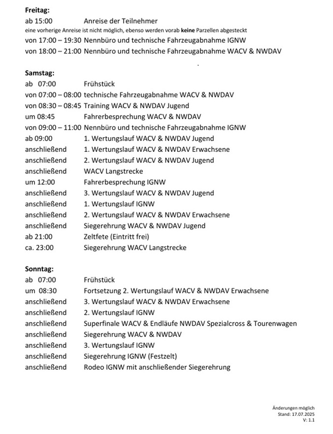 Neben den bekannten Meisterschaftsläufen zur IGNW und WACV inklusive Langstreckenrennen wird mit dem NWDAV eine weitere AutoCross Serie in Linsburg starten.